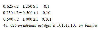 Exemple du calcul d'un nombre à virgule : traduire en binaire le nombre qui est en base 10