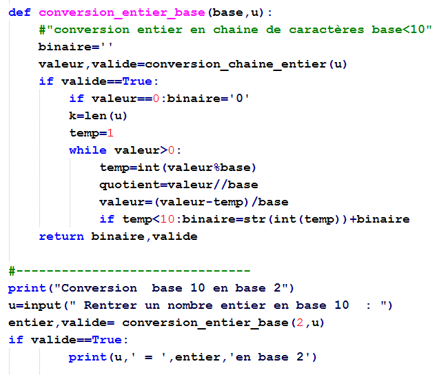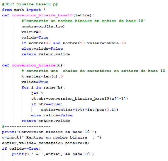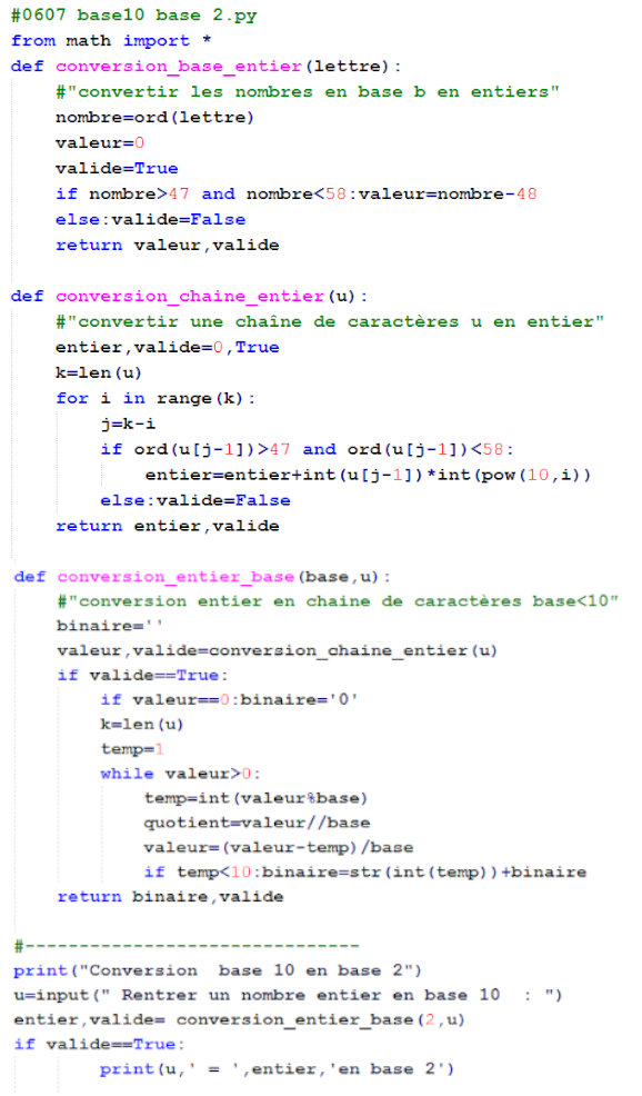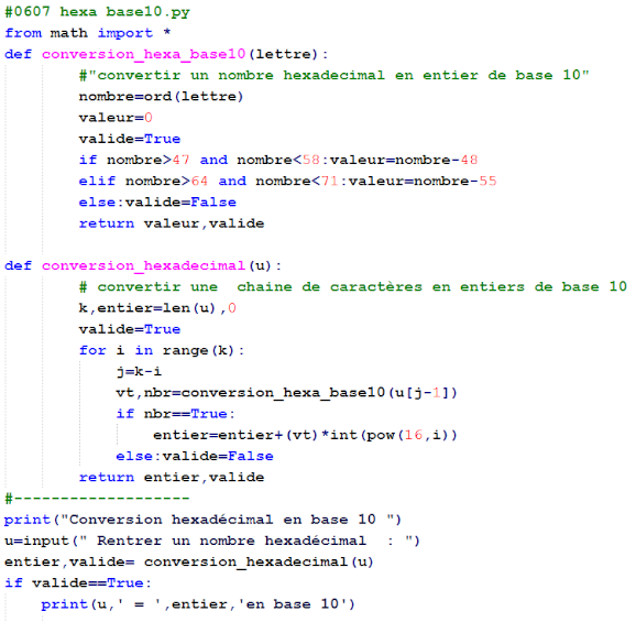 - Exemples : Binaire, hexadécimal en python